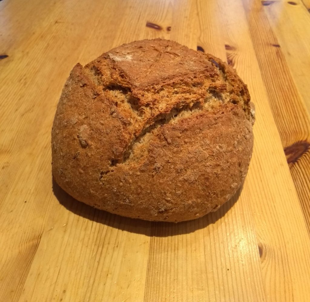 Alle Zutaten und das Roggenpoolish zusammen rühren und gut ca. 10 Minuten kneten. Danach in kleinen Portionen das Quellstück (Körner) einkneten. Anschließend den Teig wieder bei Raumtemperatur 90 Minuten gehen lassen. Danach den Teig ein bis zwei Mal falten und wieder 90 Minuten gehen lassen. Während dessen den Backofen auf 250 Grad vorheizen.