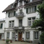 Oben angekommen sind wir in eine echte schweizer Gartenwirtschaft gekommen. Wir hätten schon gerne früher eine Pause gemacht, aber Bänke gab es nicht und Norbert weigerte sich auf einer Wiese, wie er sich ausdrückte Güllewiese, zu pausieren. Endlich haben wir die Zivilisation wieder erreicht, waren aber überrascht, wie lange sich 4 KM ziehen können.