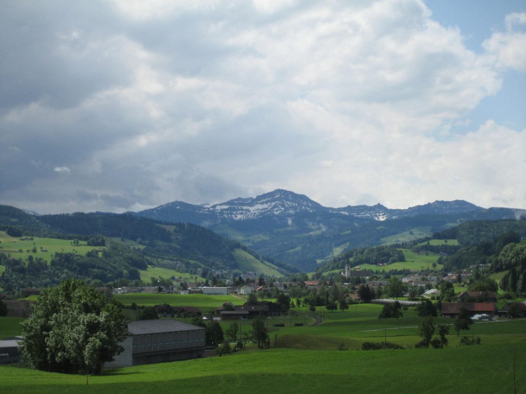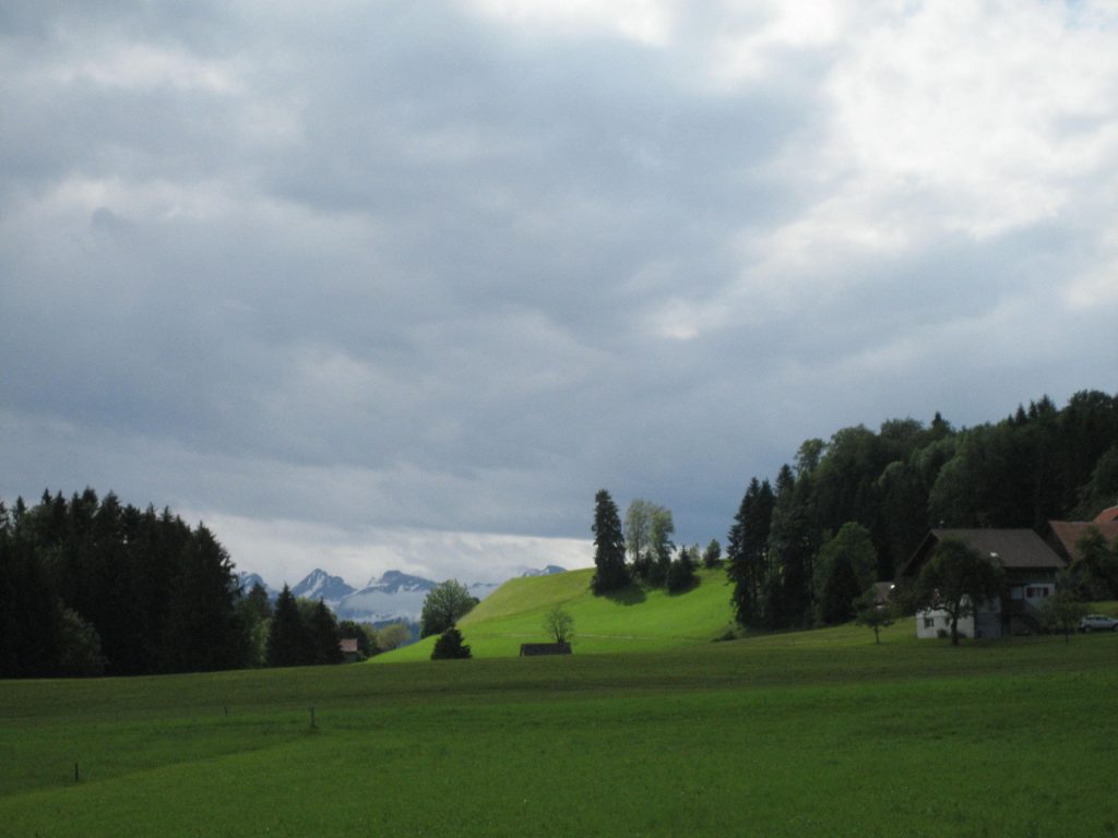 Nach einer durch Baustellen und fehlender Ausschilderung bedingten Irrfahrt fanden wir endlich aus Herisau heraus. Das nervte schon etwas, weil es im stark frequentiertem Verkehr herauf und herunter ging. Nachdem wir auch die Randgebiete von St.Gallen hinter uns gelassen hatten, ging es recht schön weiter. Nach einiger Zeit mußten wir aber wieder kräftig in die Pedale treten. Es ging vorbei an einer Schaukäserei auf fast 1000 m hoch. Jetzt war uns auf jeden Fall warm.