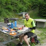 schon unterwegs mußten wir zweimal einen Kleiderwechsel vornehmen, da es ziemlich Kalt war. Die Temperaturen sind von hochsommerlich um ca. 18 Grad auf 10 Grad gefallen. Ich will gar nicht darüber nachzudenken, wie kalt es auf 1000 m war. Schon die letzten 5 KM bis zur verdienten Pause fuhren wir dann auch noch im Regen.