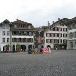 Die weitere Strecke führte durch eine grüne, viel sanftere Gegend als bisher. Es war eine ständiges auf und Ab aber nicht übermäßig steil. In Madiswil einer von Flyer eingerichteten Akkuwechselstation, wollten wir unsere Akkus aufladen. Leider wurde nur ein Akku aufgeladen, da irgendjemand beim zweiten Akku einfach den Stecker gezogen hatte. Norbert mußte deshalb ohne die Sicherheit unbegrenzt Power zu haben, weiter fahren. Aus Solidarität habe ich auch nur selten in den nächst höheren Gang geschaltet. Schließlich erreichten wir Willisau und kehrten in dem angesagtesten Cafe des Ortes ein. Wir lernten dort die Willisauer Kringli kennen. Wir wurden auch gleich eingeweiht, wie diese knochenharten Teile zu genießen sind – den Kringel auf die offene Hand legen und mit dem Ellenbogen des anderen Arms zertrümmern. Dann kann man die einzelnen Stücke genießen.