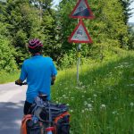 Endlich war das Wetter einmal so, daß wir von Anfang an in einem sommerlichen Outfit fahren konnten, was für Juni ja eigentlich normal sein sollte. Unser erstes Zwischenziel war St.Anton. Es ging nun stetig aber gut fahrbar die nächsten 12 KM bergauf. Wir konnten die gesamte Strecke mit Tour (2.Stufe) fahren. Auf der Strecke wurden wir immer wieder mit schönen Ausblicken belohnt. Nach 70 Minuten und zwei Balken der Akkus hatten wir es geschafft. Auf 1100 m konnten wir uns ausruhen und unsere Akkus wieder voll laden.
