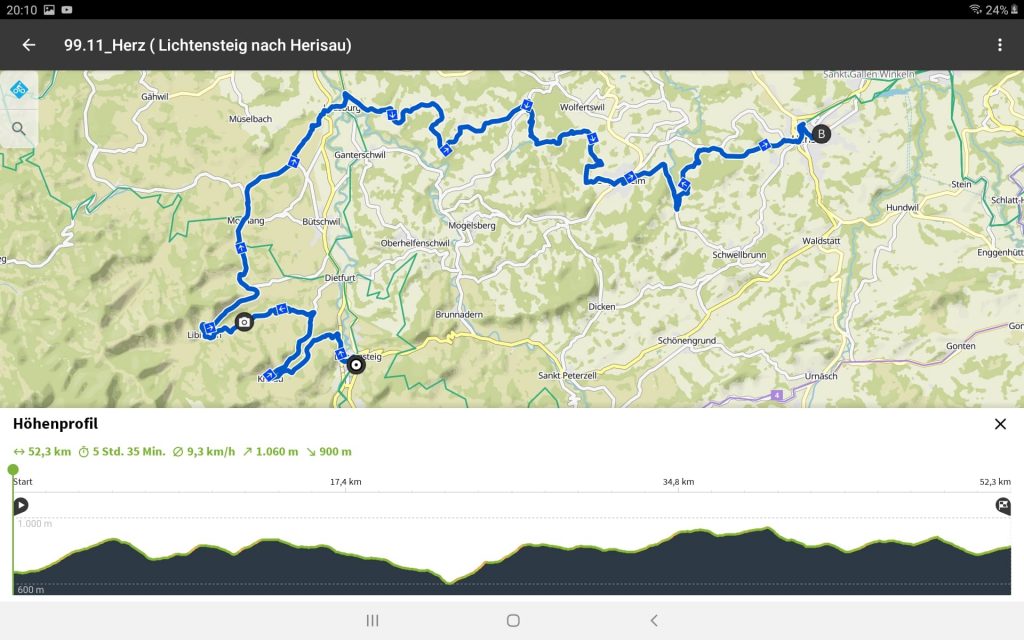 Tourdaten: Strecke 52,3 Kilometer in 3:21 Stunden und 1060 Höhenmeter