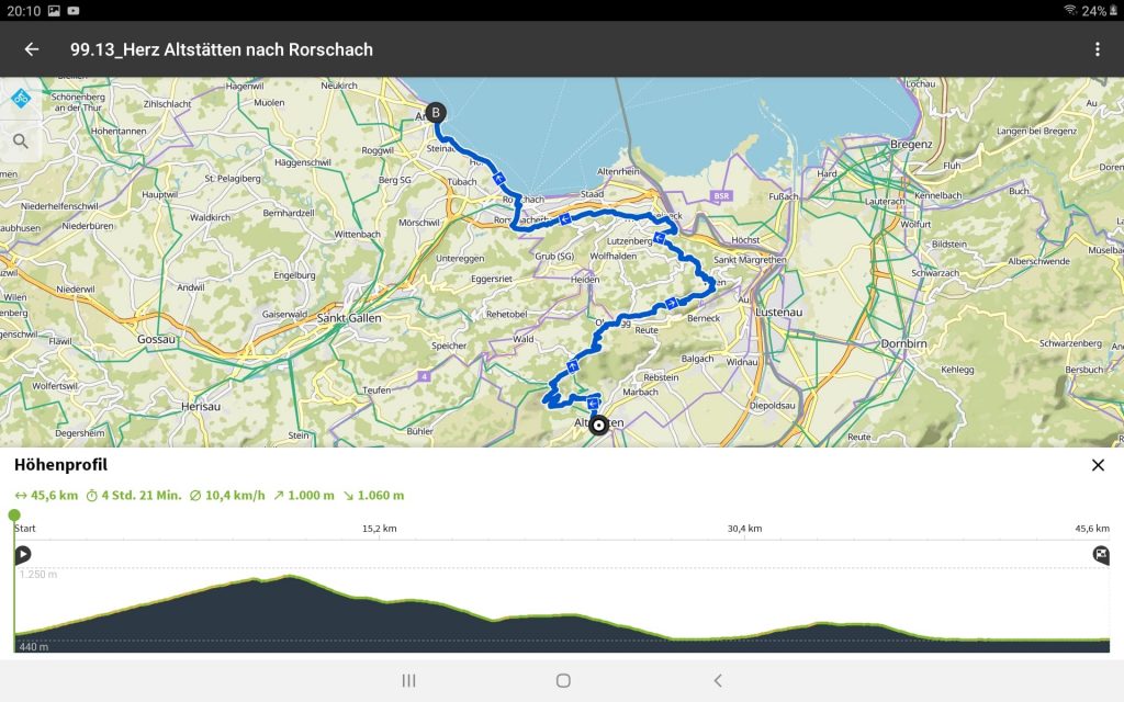 Tourdaten: Strecke 45,4 Kilometer in 3 Stunden und 1060 Höhenmeter
