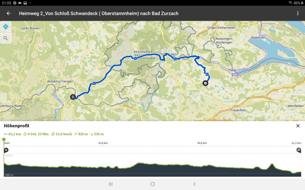 Tourdaten: Strecke 61,8 Kilometer in 3:09 Stunden und 420 Höhenmeter