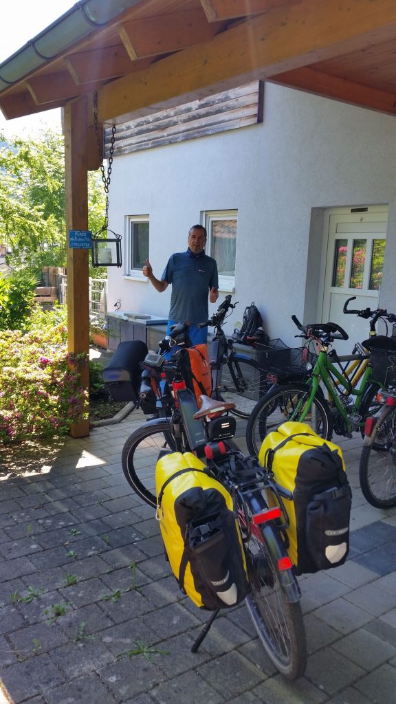 Unten angekommen radelten wir durch einige Baustellen mit massenhaft Autoverkehr nach Wiedlisbach. Das gebuchte B&B war fast o.k. In der Gegend gab es keine Möglichkeit etwas zu essen zu bekommen. Nach einer heißen Dusche hatten wir auch keine Lust die Gegen zu erkunden und stürzten uns auf unsere Vorräte. Das Essen bestand dann aus einer Banane und einem Snickers aber für jeden. Am anderen Tag fiel auch noch das Frühstück aus, obwohl es in der Buchung stand. Aber was nicht ist, ist eben nicht.