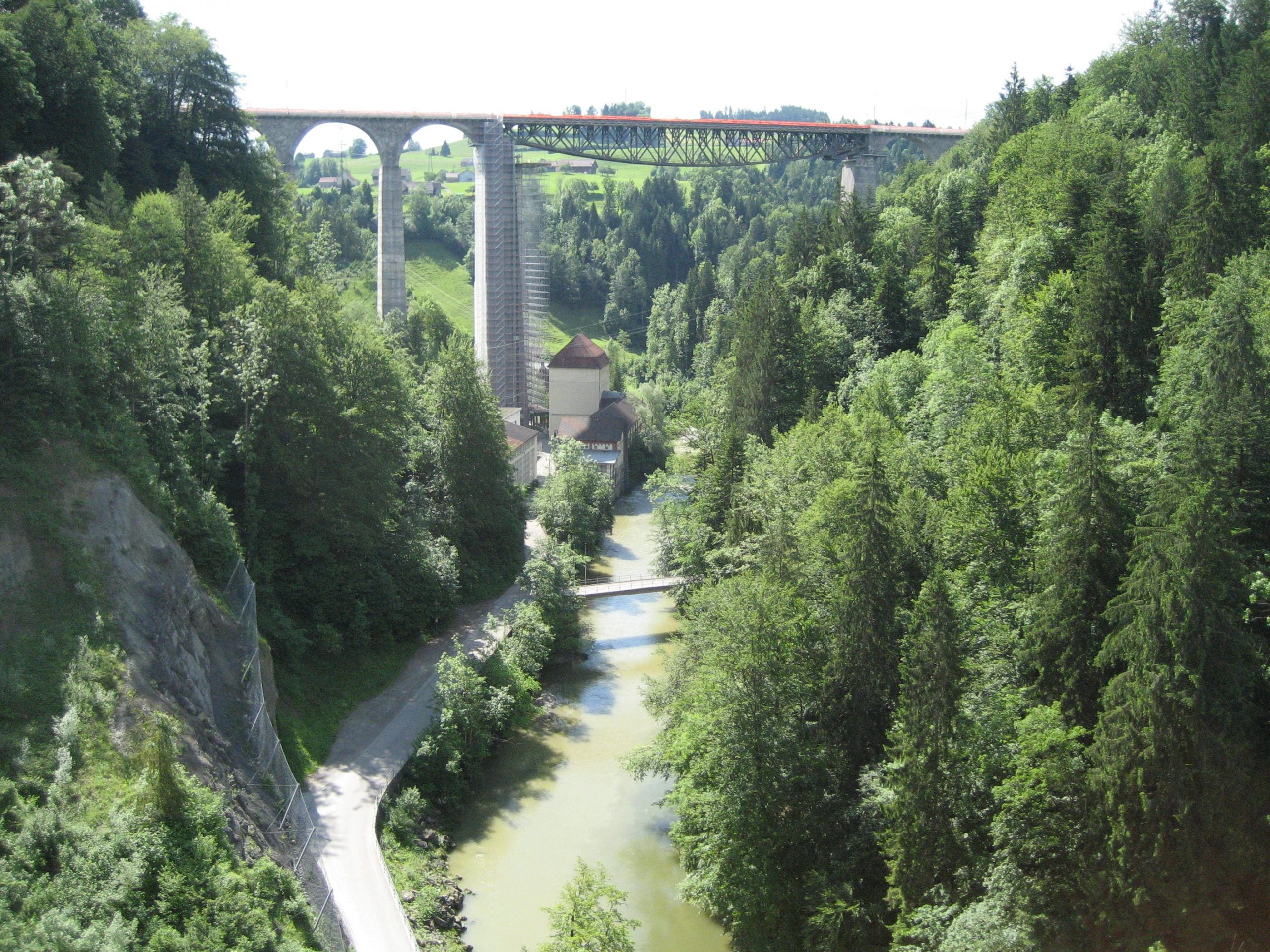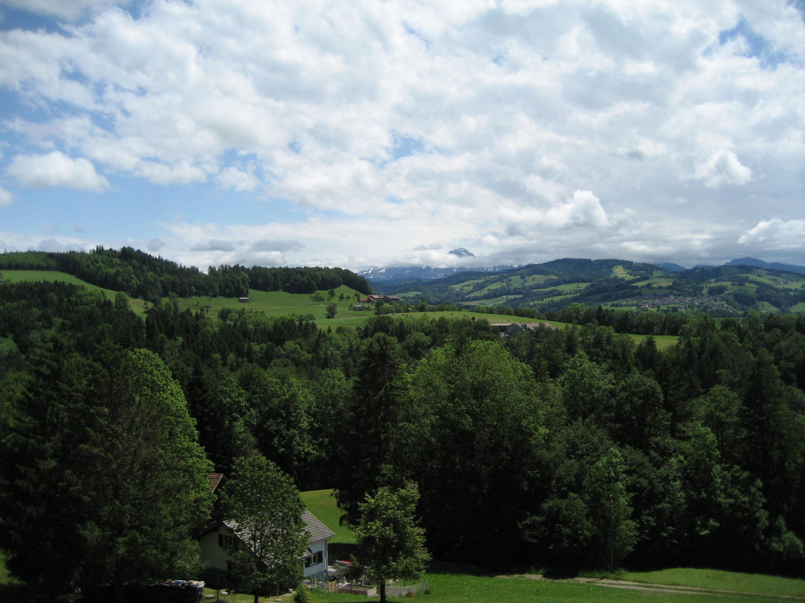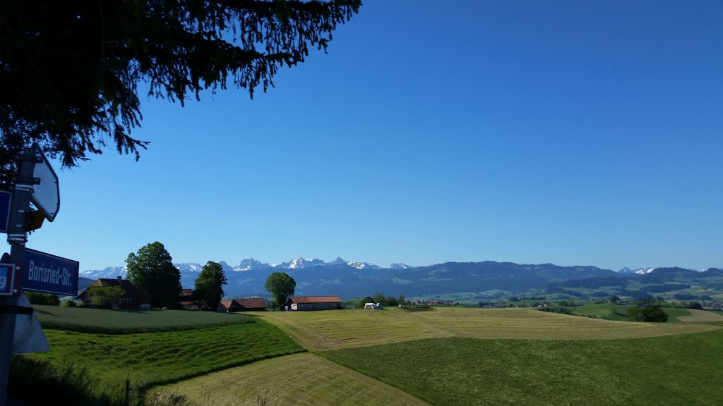 Nach einer durch Baustellen und fehlender Ausschilderung bedingten Irrfahrt fanden wir endlich aus Herisau heraus. Das nervte schon etwas, weil es im stark frequentiertem Verkehr herauf und herunter ging. Nachdem wir auch die Randgebiete von St.Gallen hinter uns gelassen hatten, ging es recht schön weiter. Nach einiger Zeit mußten wir aber wieder kräftig in die Pedale treten. Es ging vorbei an einer Schaukäserei auf fast 1000 m hoch. Jetzt war uns auf jeden Fall warm.