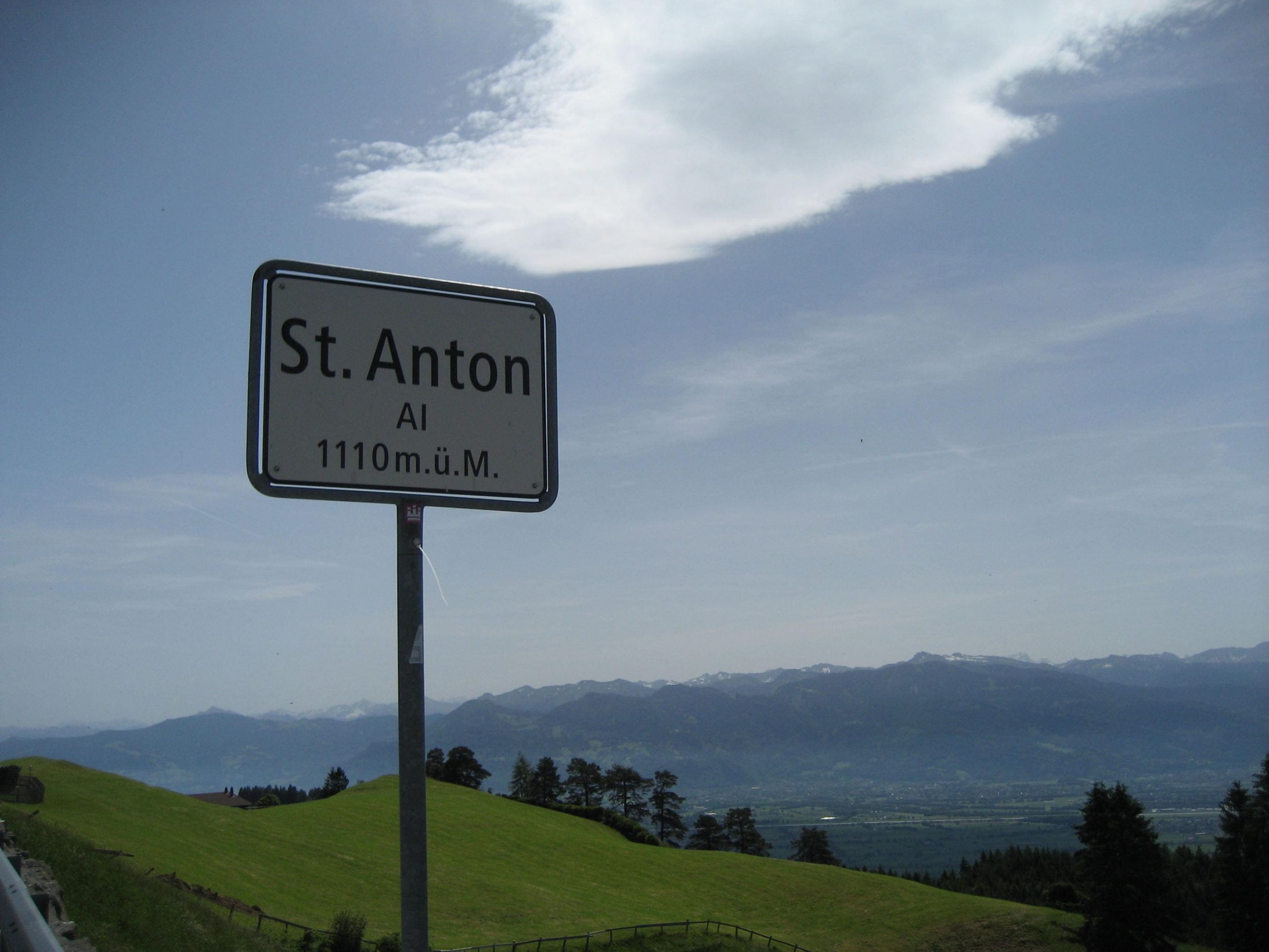 Endlich war das Wetter einmal so, daß wir von Anfang an in einem sommerlichen Outfit fahren konnten, was für Juni ja eigentlich normal sein sollte. Unser erstes Zwischenziel war St.Anton. Es ging nun stetig aber gut fahrbar die nächsten 12 KM bergauf. Wir konnten die gesamte Strecke mit Tour (2.Stufe) fahren. Auf der Strecke wurden wir immer wieder mit schönen Ausblicken belohnt. Nach 70 Minuten und zwei Balken der Akkus hatten wir es geschafft. Auf 1100 m konnten wir uns ausruhen und unsere Akkus wieder voll laden.
