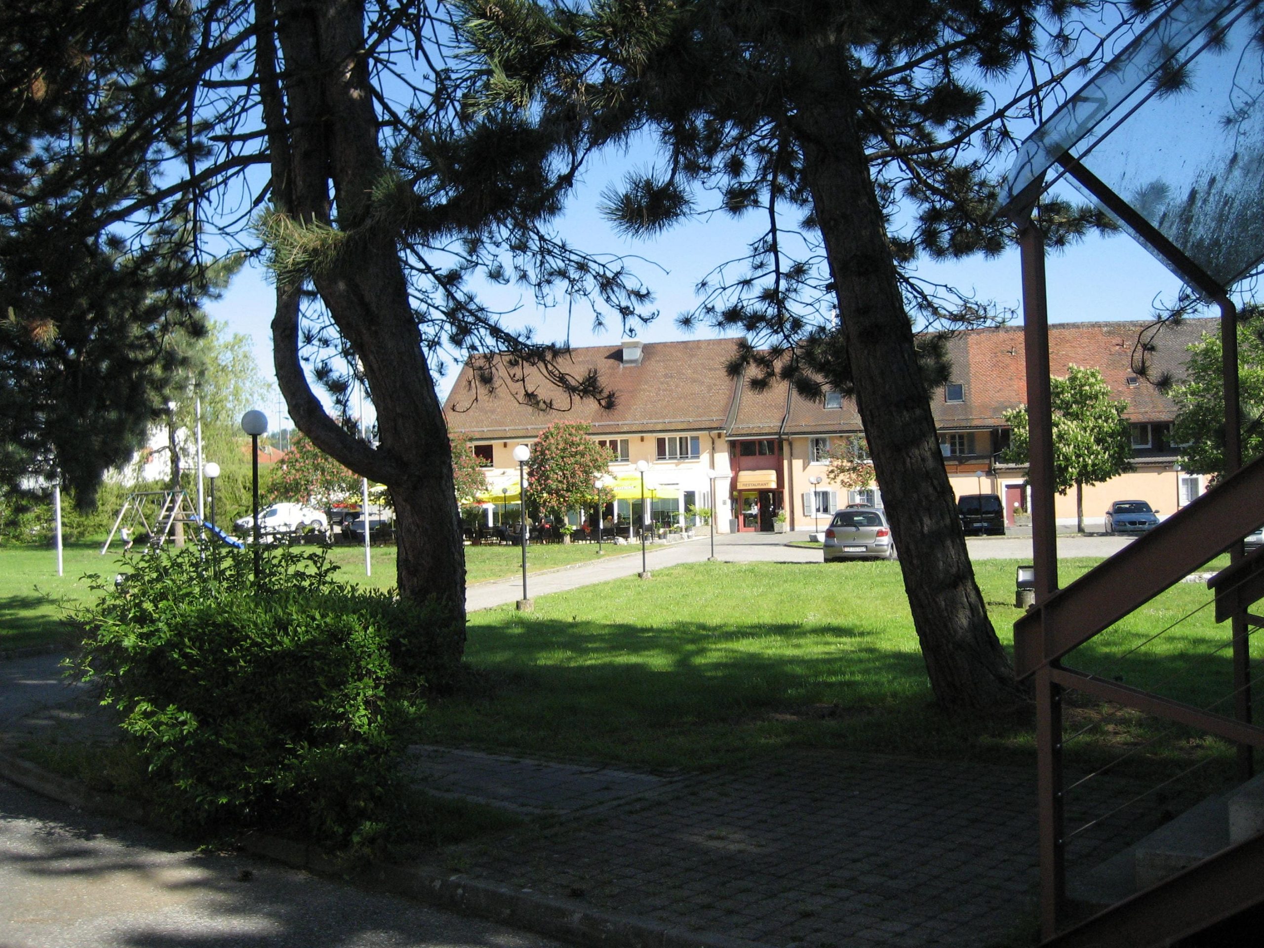 Auffällig auf der ganzen Strecke war, daß es keine Bänke für eine wohlverdiente Pause gab. Nach 2,5 Stunden Fahrzeit kehrten wir im Örtchen Rue direkt unter der Burganlage ein. Dort konnten wir uns mit einem leckeren Salat stärken und für die nächsten heftigen Anstiege erholen. Auf der nächsten Strecke mußten wir aus unseren Akkus kurzzeitig sogar au die 3. Stufe Sport schalten, um die Steigung zu bewältigen. Der höchste Punkt des Tages war heute 850 m. Danach ging es nach Romont weitgehend nur noch abwärts. Kurz vor Ladenschluß um 16:00 Uhr erreichten wir einen Coop, wo wir uns mit Essen versorgten. Danach begann eine 4 KM lange Irrfahrt durch den Ort, bis wir unser Hotel, das etwas außerhalb lag, erreichten.