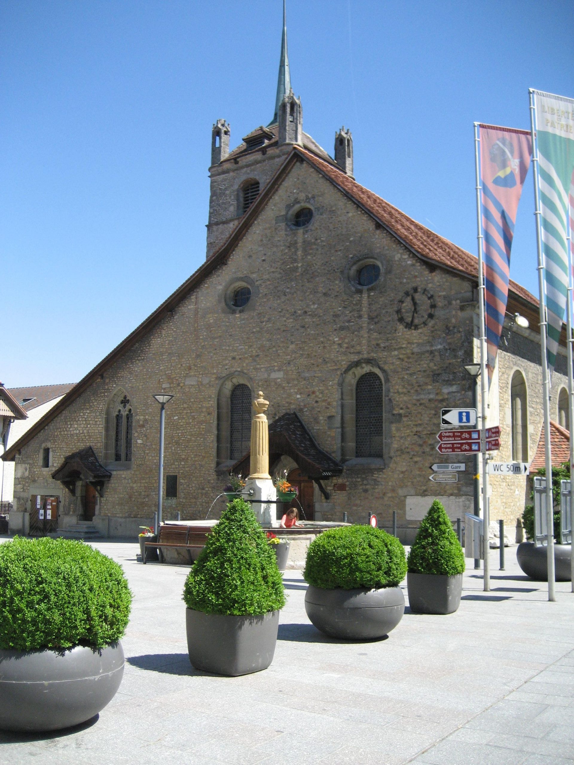 Die nächste Etappe ging nach Murten. Auf dem Hinweg nach Lausanne sind wir schon einmal durch Murten unten am See entlang gekommen. Jetzt sind wird oben durch den Ort gefahren. In Murten war dann endlich eine Mittagspause angesagt. Weiter ging es nach Laupen, wo wir in einer Creperie leckere Crepes aßen. Gestärkt konnten wir die letzten 6 KM in Angriff nehmen. Es ging immer an der Sense entlang auf Berner Seite. Kurz vor Flamatt wechselten wir zum anderen Ufer auf Friburger Seite.