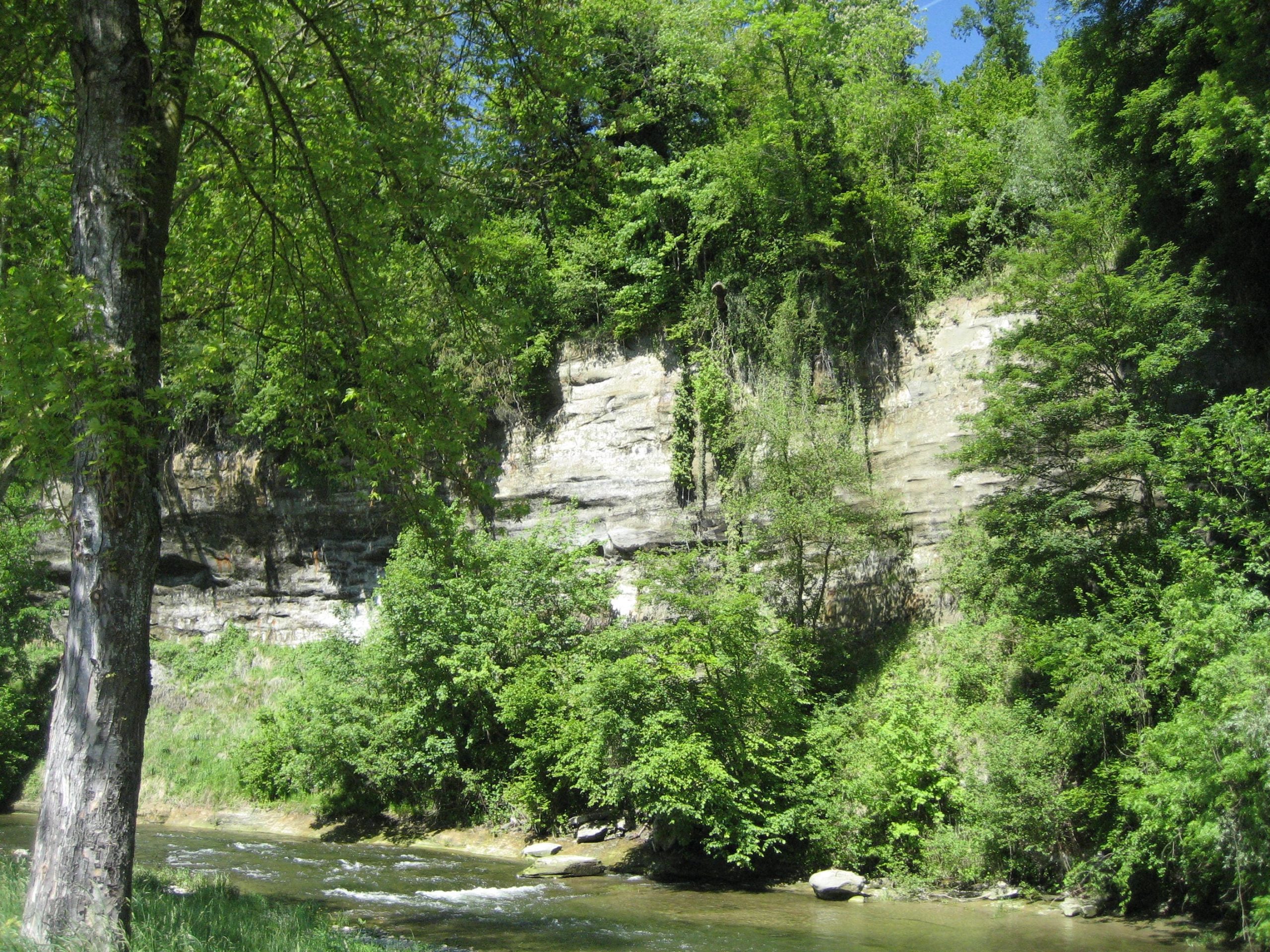 In Augst verließen wir die Veloroute 2 und fuhren weiter nach Ließtal und später auf der Veloroute 54 nach Balsthal. Anfangs stieg es stetig aber moderat an. Irgendwann durften wir wieder bergab fahren. Leider war zu diesem Zeitpunkt die Sonne hinter Wolken verschwunden und der Wind hatte zugelegt. Wir fuhren durch einen Wald entlang an einem Bach. Die Abfahrt war saukalt. Bei einem Halt holten wir unsere dicken Westen heraus und nur wenige Minuten später, waren auch die Mützen dran. Kalt war es immer noch.