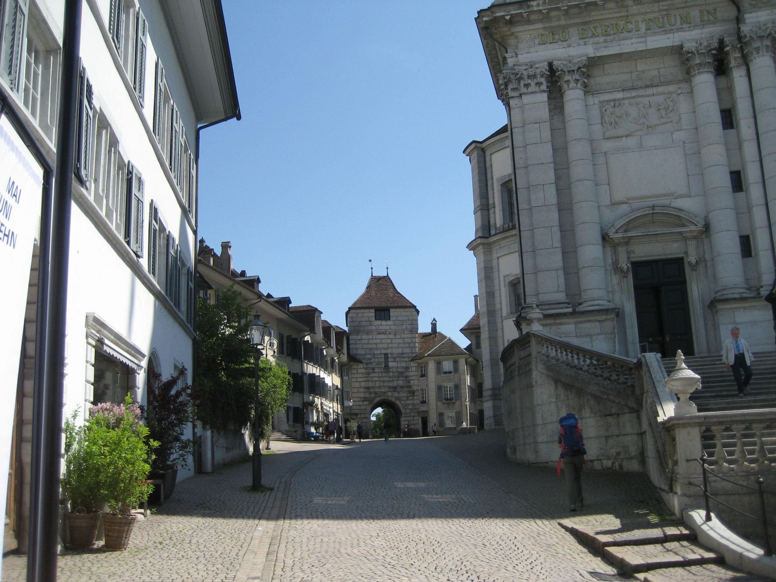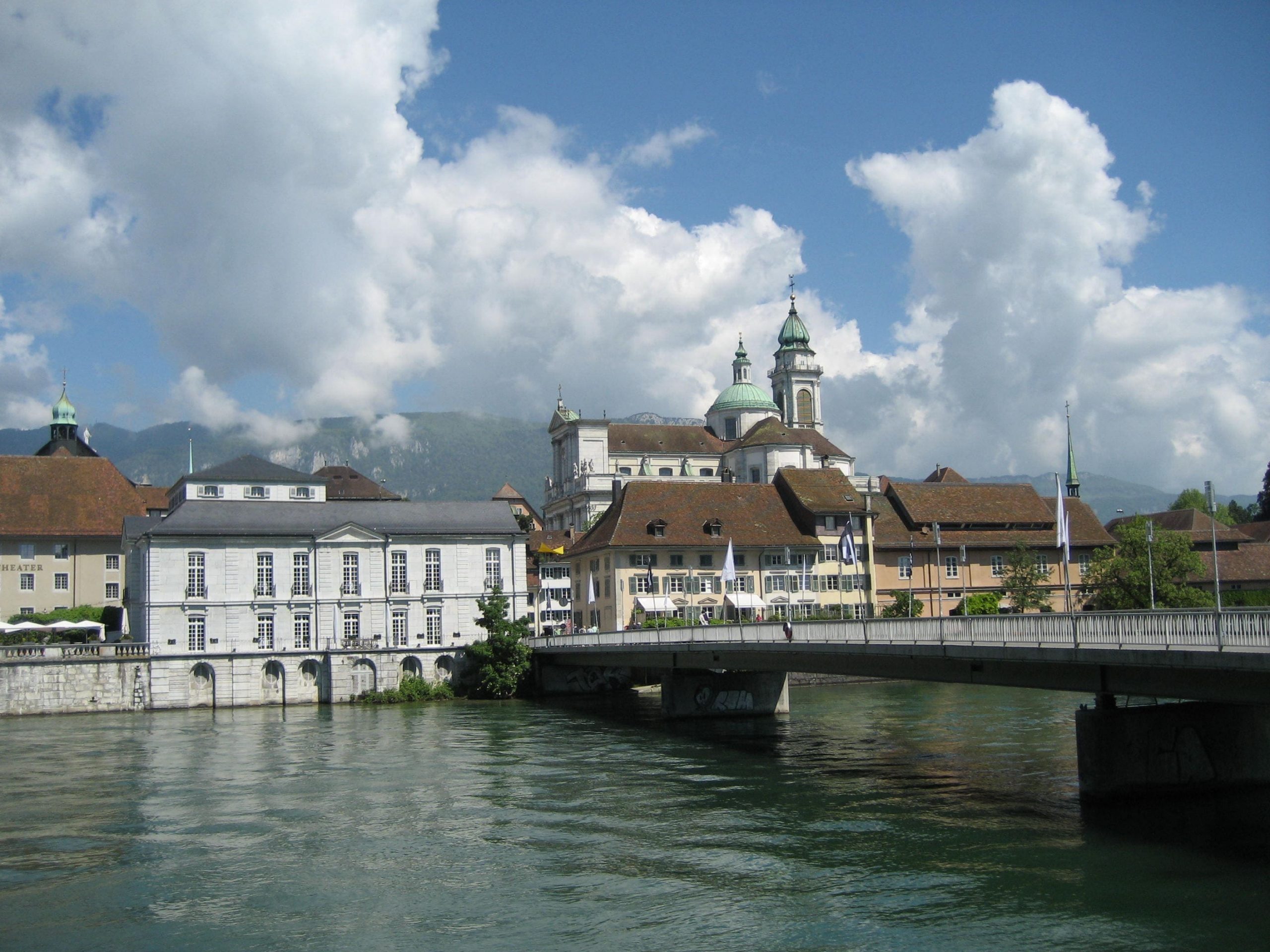 Die Unterkunft hieß zwar Bed&Breakfast aber wegen des Feiertages gab es wie gesagt eben kein Breakfast. Wir hatten uns dann im Internet eine Konditorei in Solothurn heraus gesucht, die auch am Vatertag auf hatte und Frühstück anbot. Wir sind also ohne Frühstück gestartet und auf der Veloroute 50 in 45 Minuten nach Solothurn gefahren. Es war zum Start unheimlich kalt. Wir mußten wieder Jacke und Mütze anziehen, da der Wind schon sehr unangenehm war.