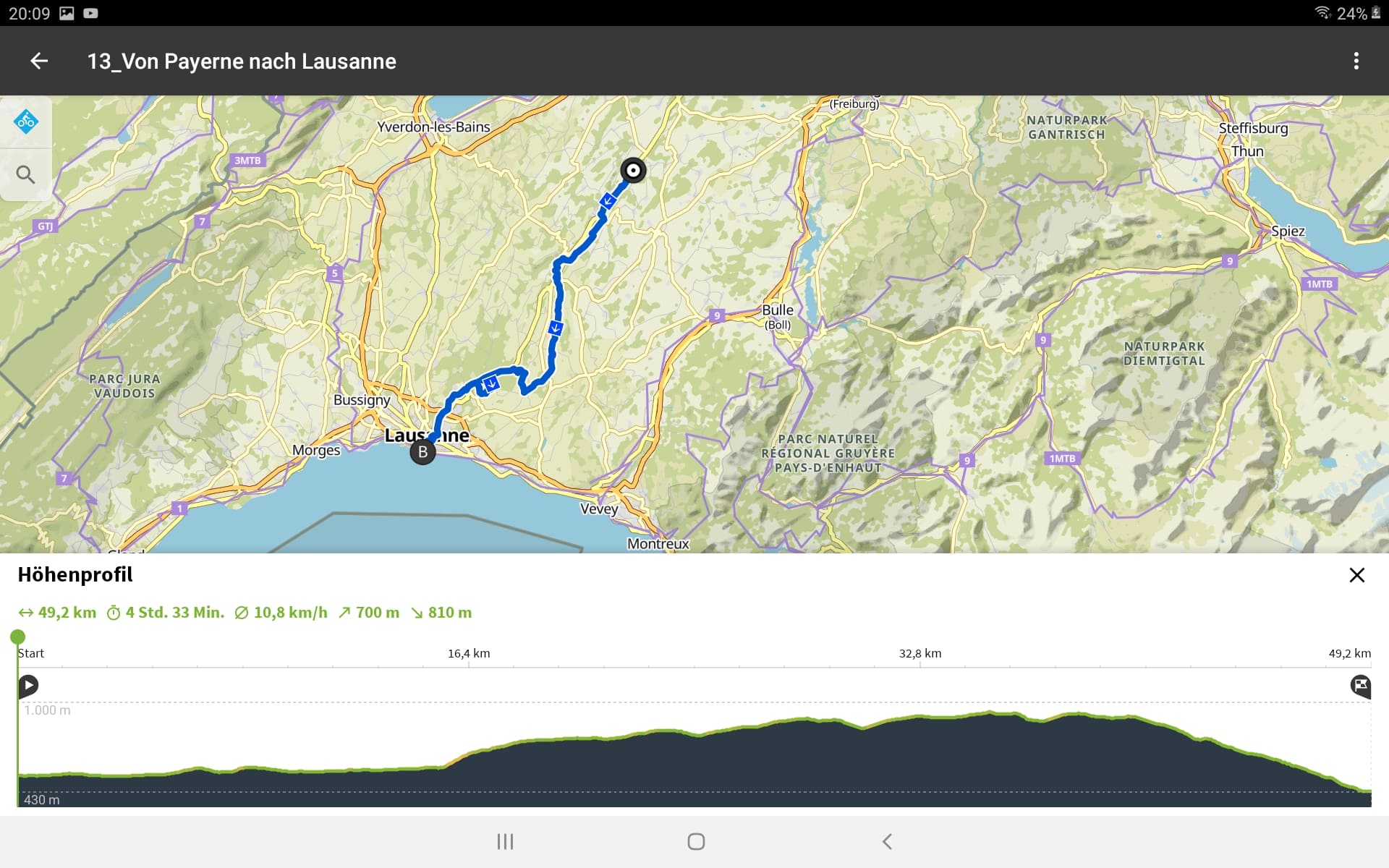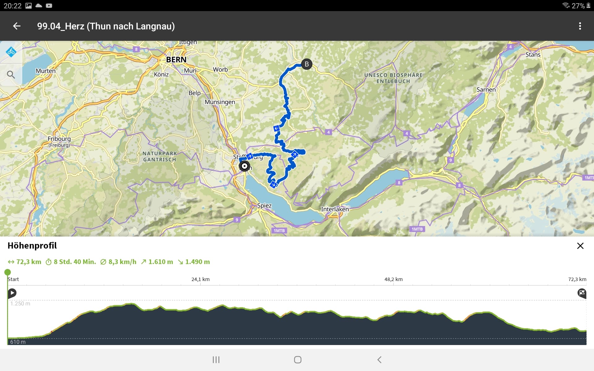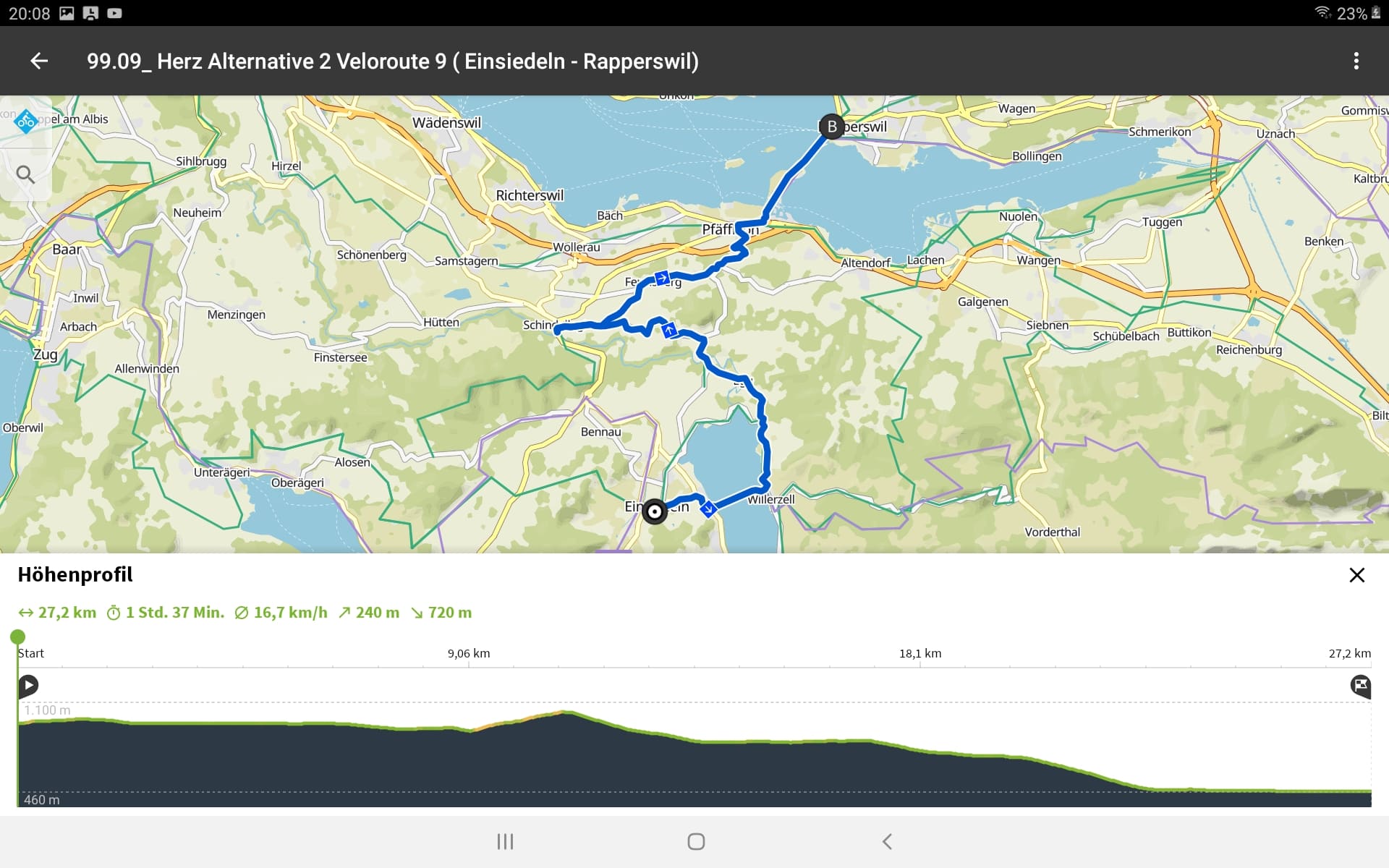 Tourdaten: Strecke 27,2 Kilometer in 1:25 Stunden und 240 Höhenmeter