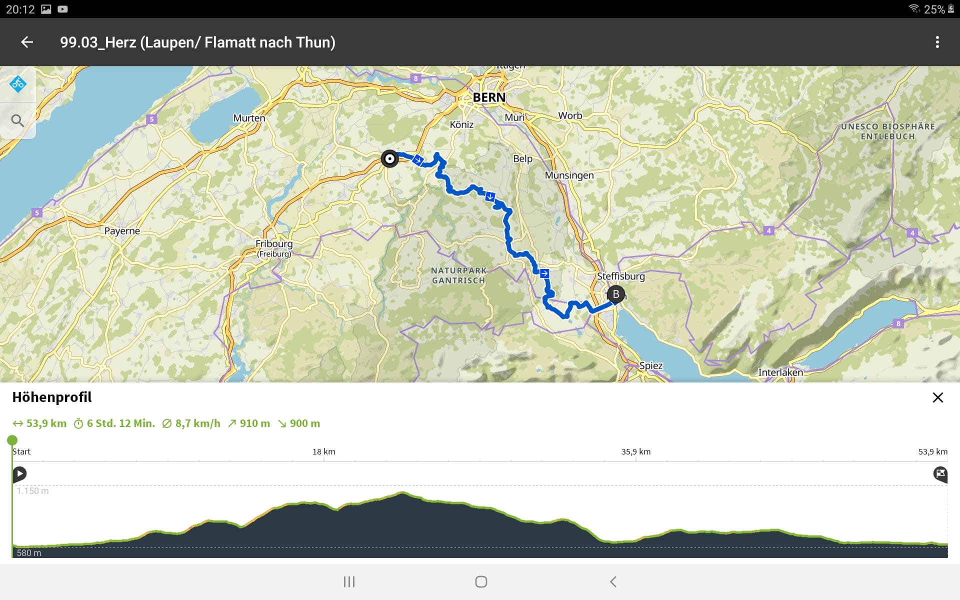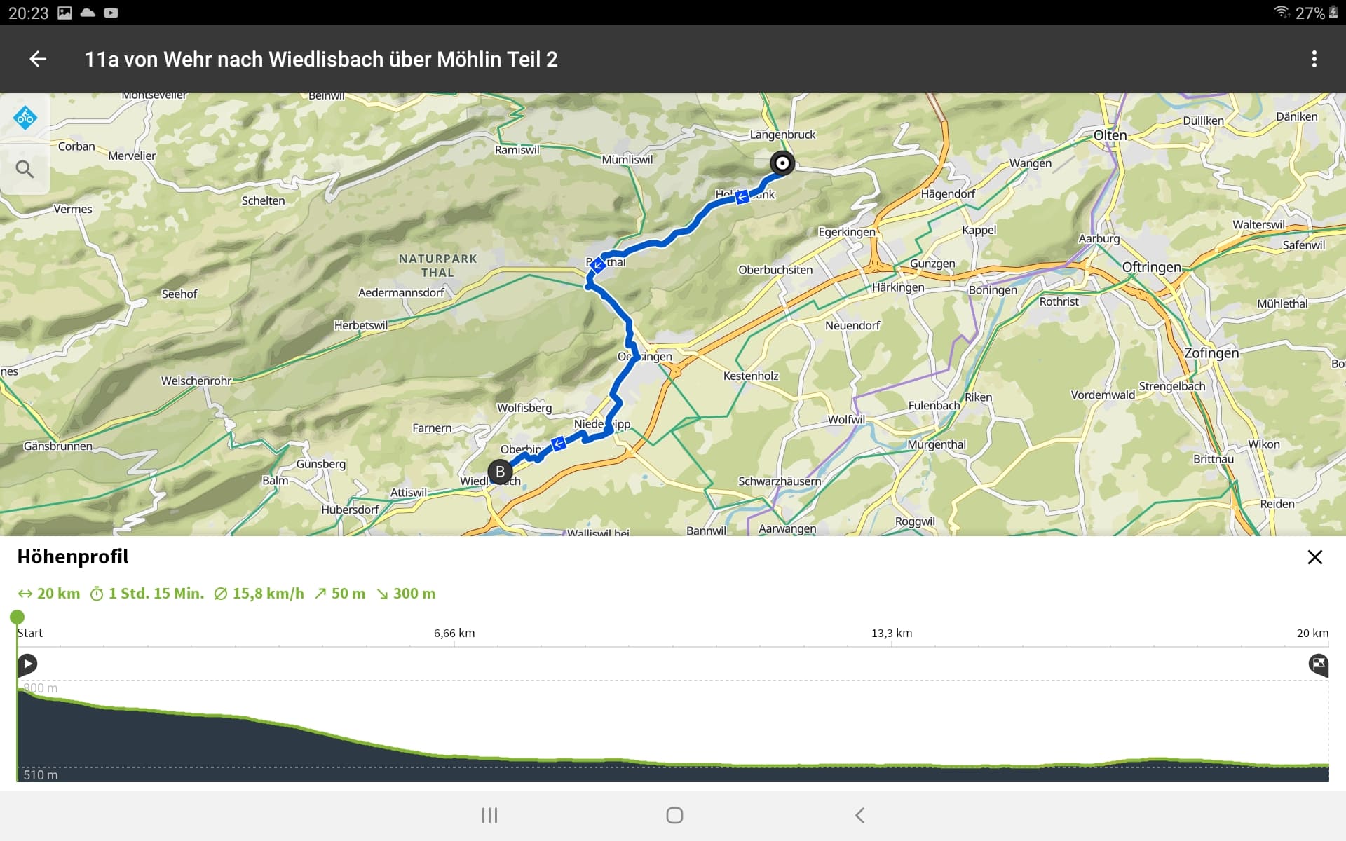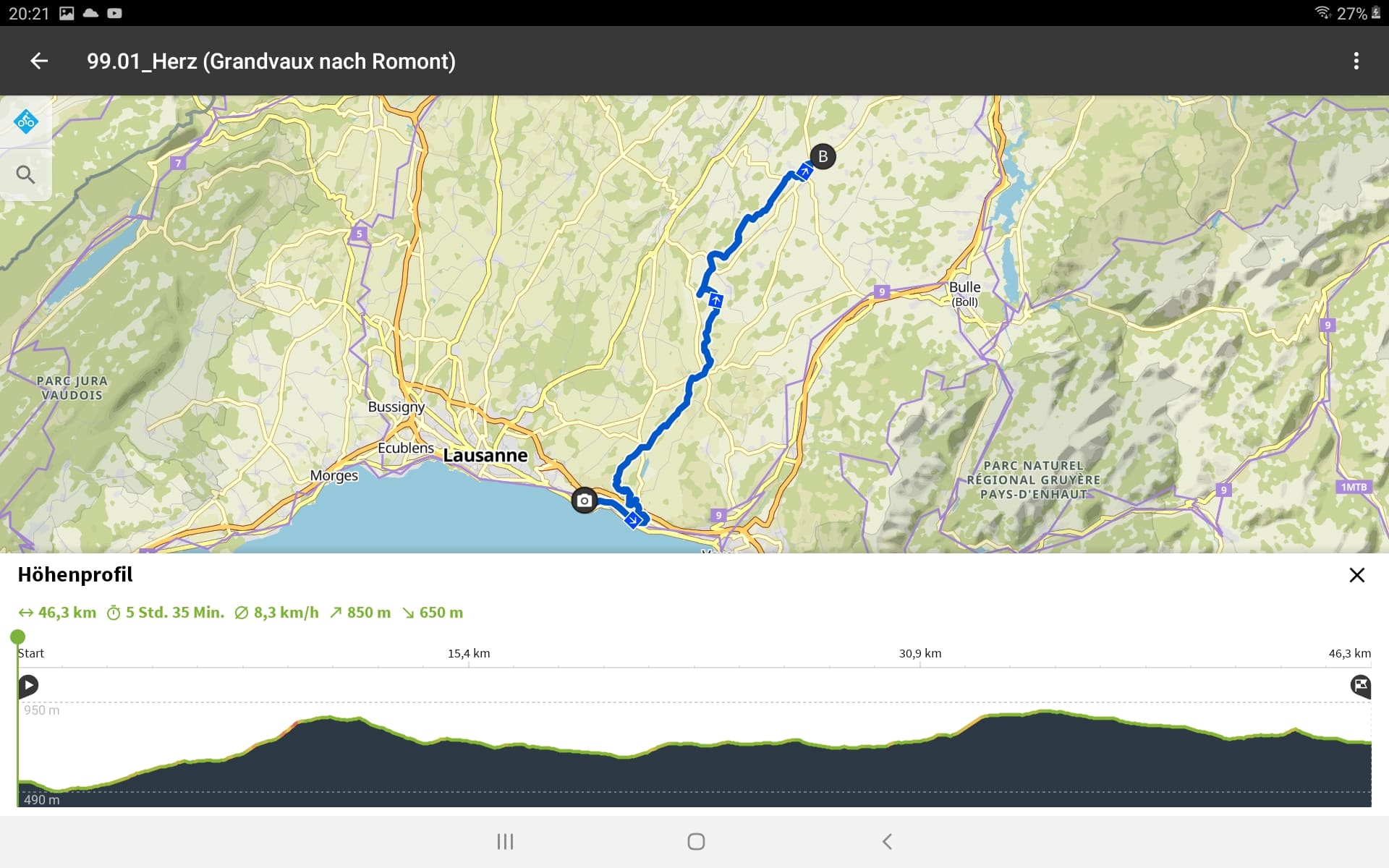 Tourdaten: Strecke 27,2 Kilometer in 1:25 Stunden und 240 Höhenmeter