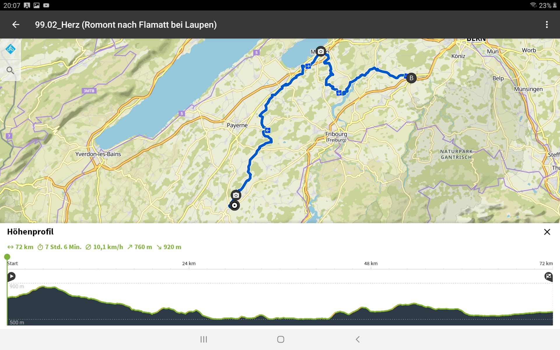 Tourdaten: Strecke 72 Kilometer in 4 Stunden