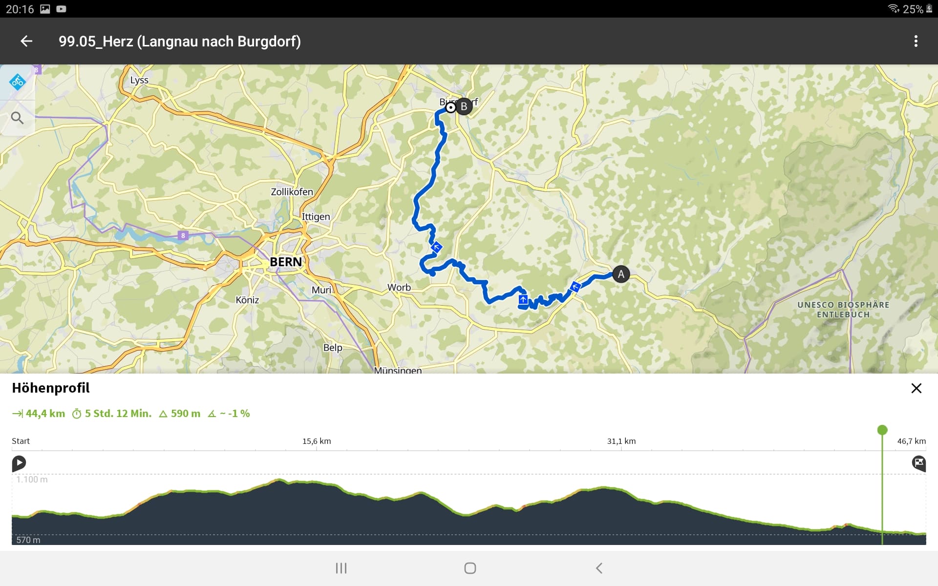 Tourdaten: Strecke 46,7 Kilometer in 3,23 Stunden und 970 Höhenmeter