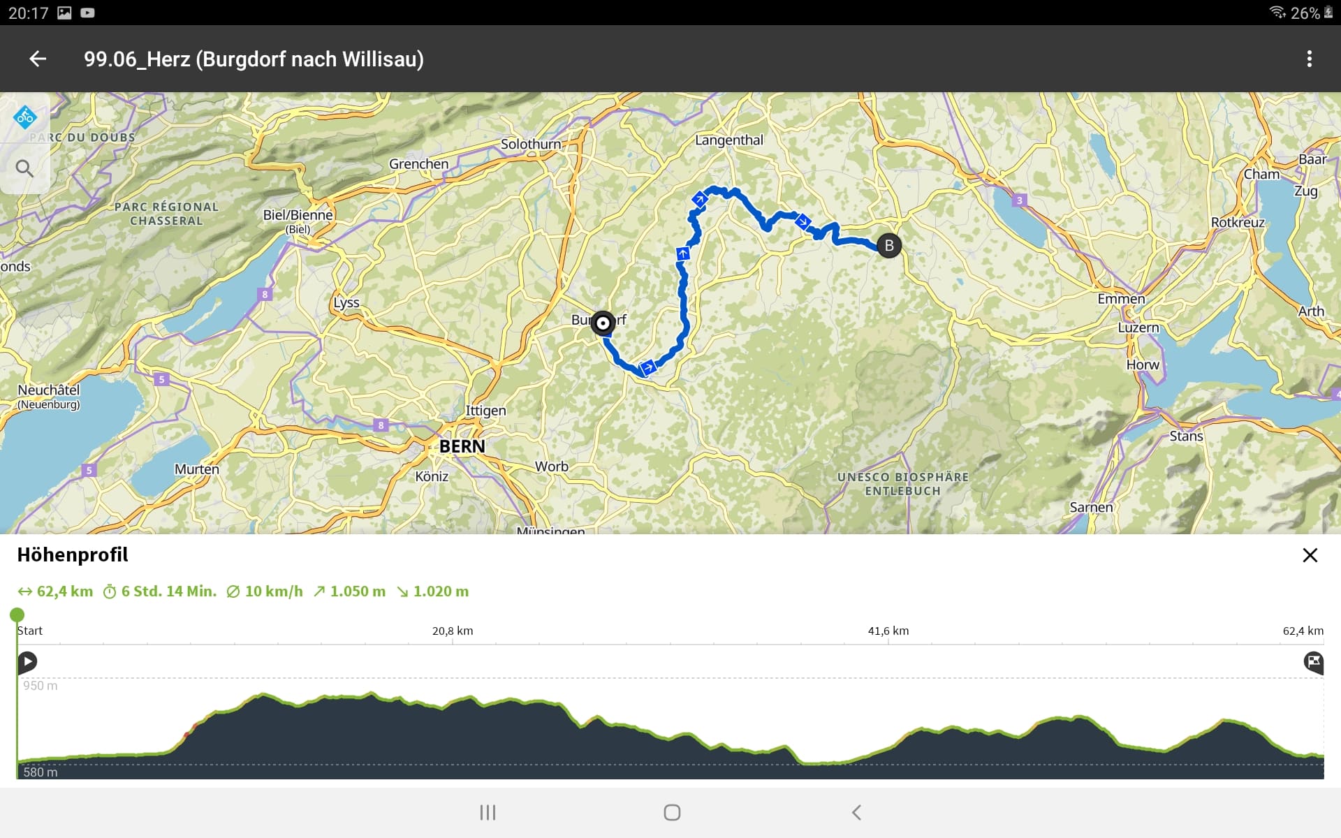 Tourdaten: Strecke 52,3 Kilometer in 3:21 Stunden und 1060 Höhenmeter