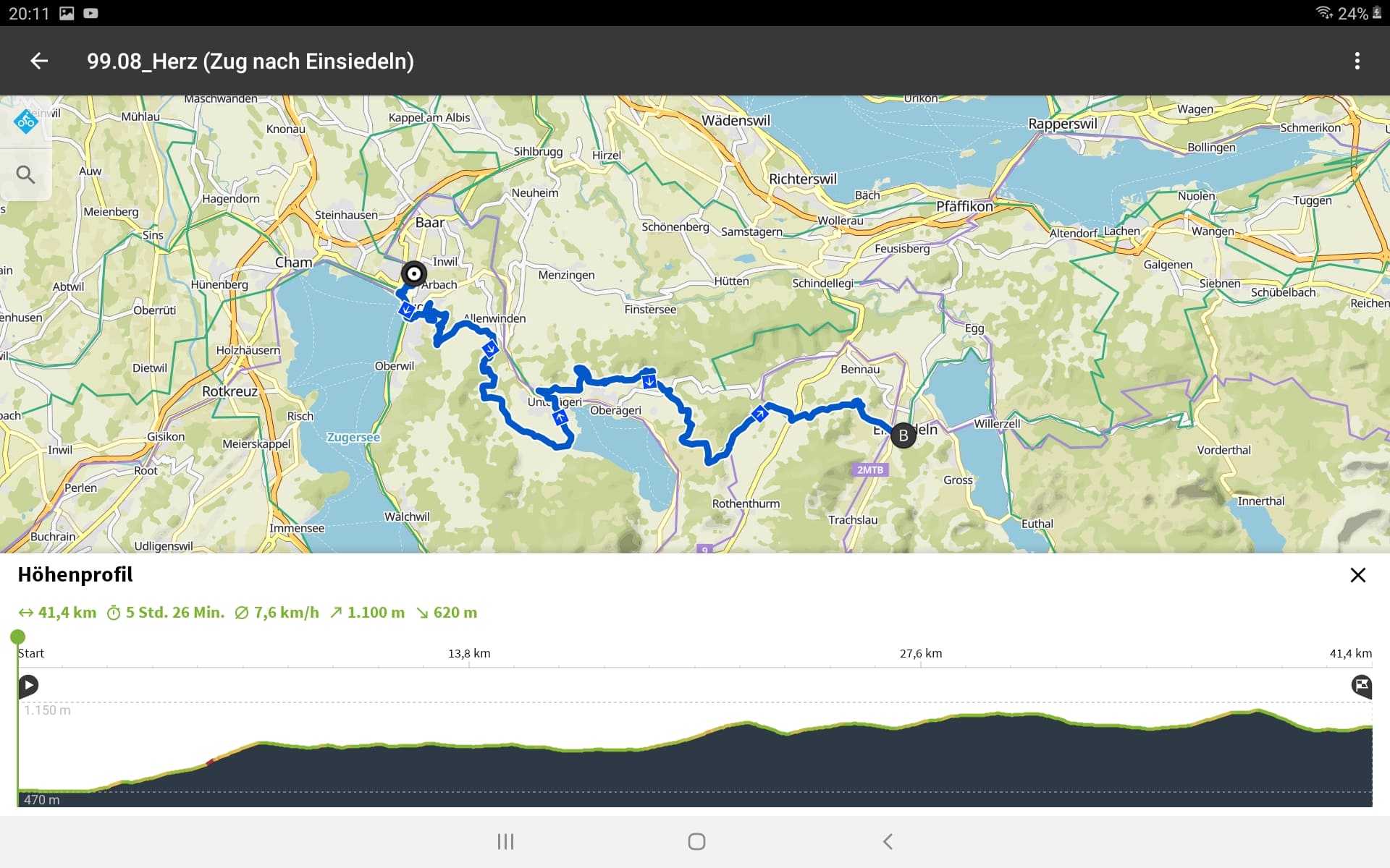 Tourdaten: Strecke 41,4 Kilometer in 3:15 Stunden und 1110 Höhenmeter