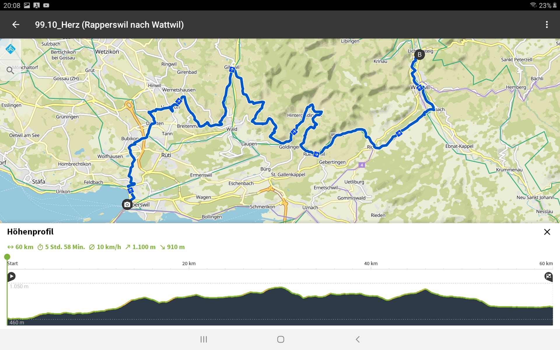 Tourdaten: Strecke 60 Kilometer in 3:54 Stunden und 1100 Höhenmeter