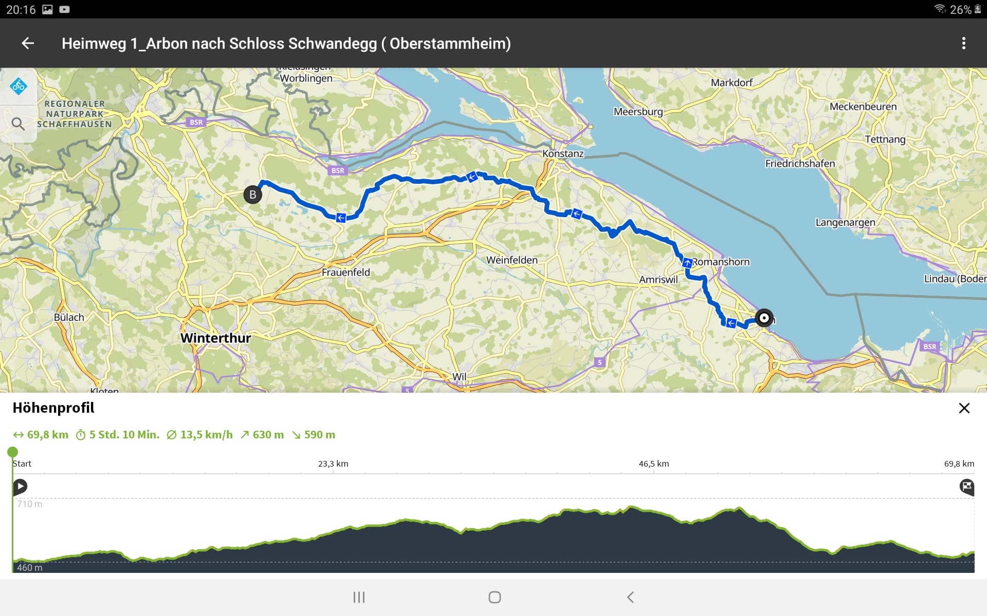 Tourdaten: Strecke 69,8 Kilometer in 4:03 Stunden und 630 Höhenmeter
