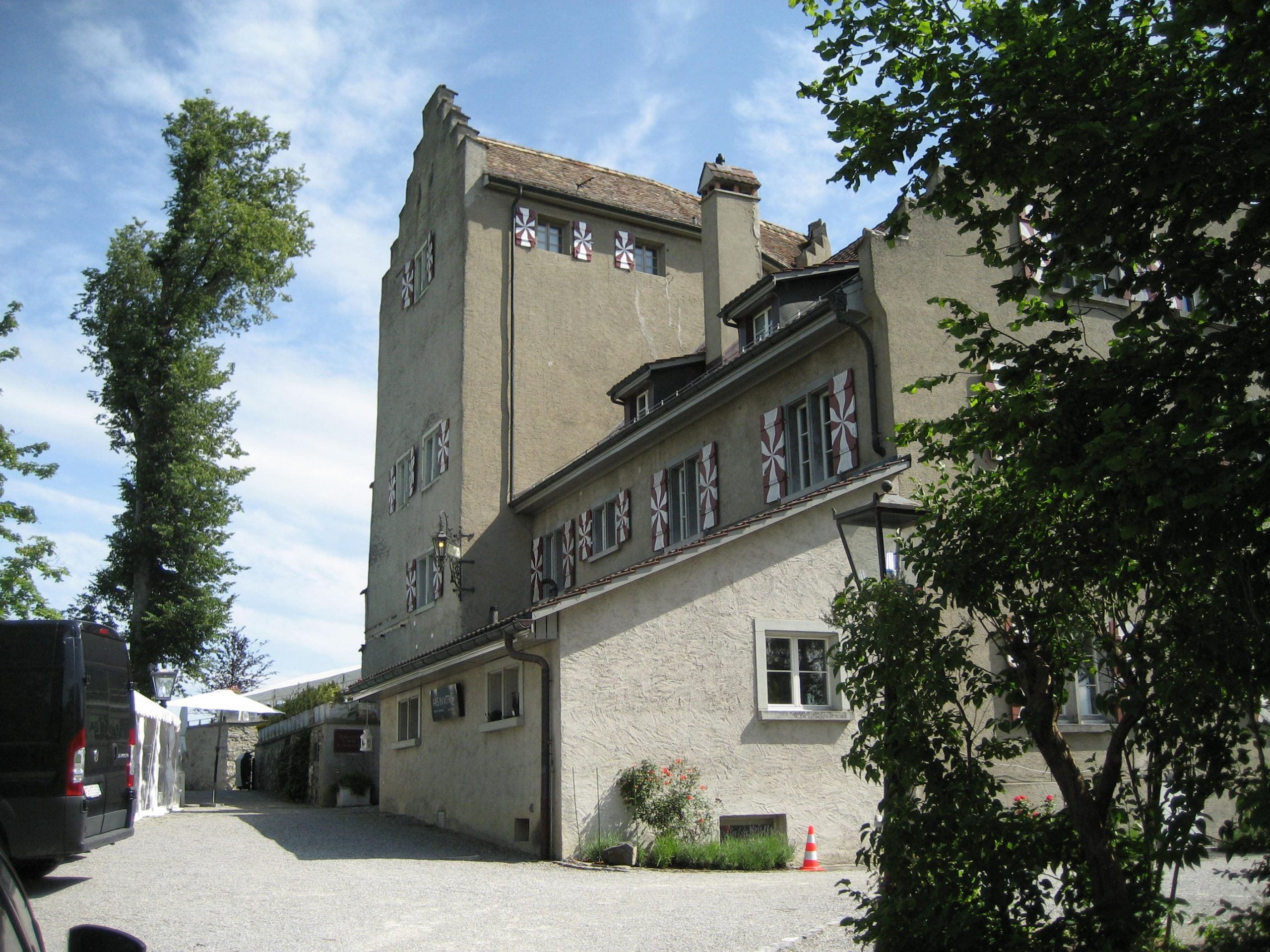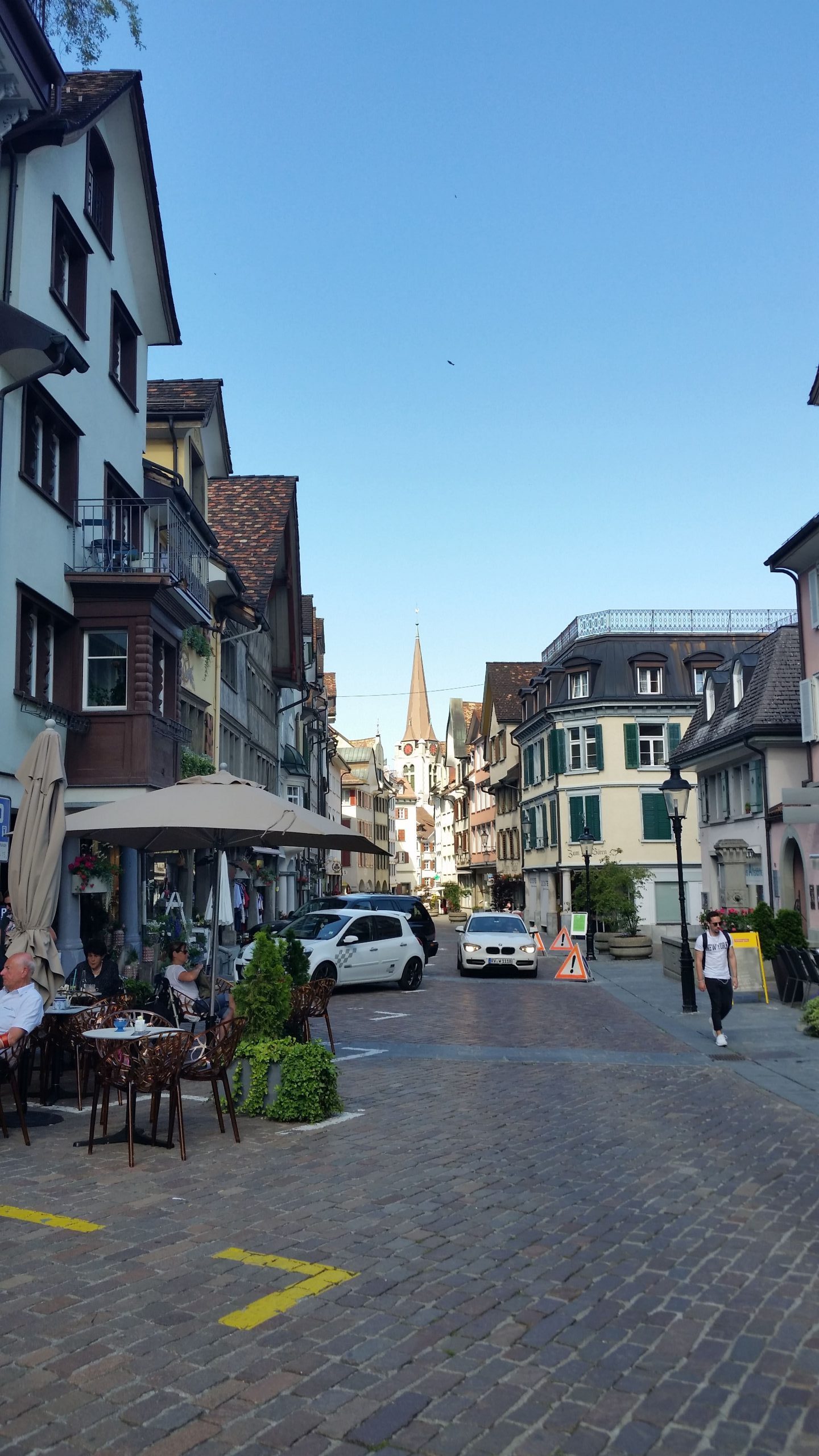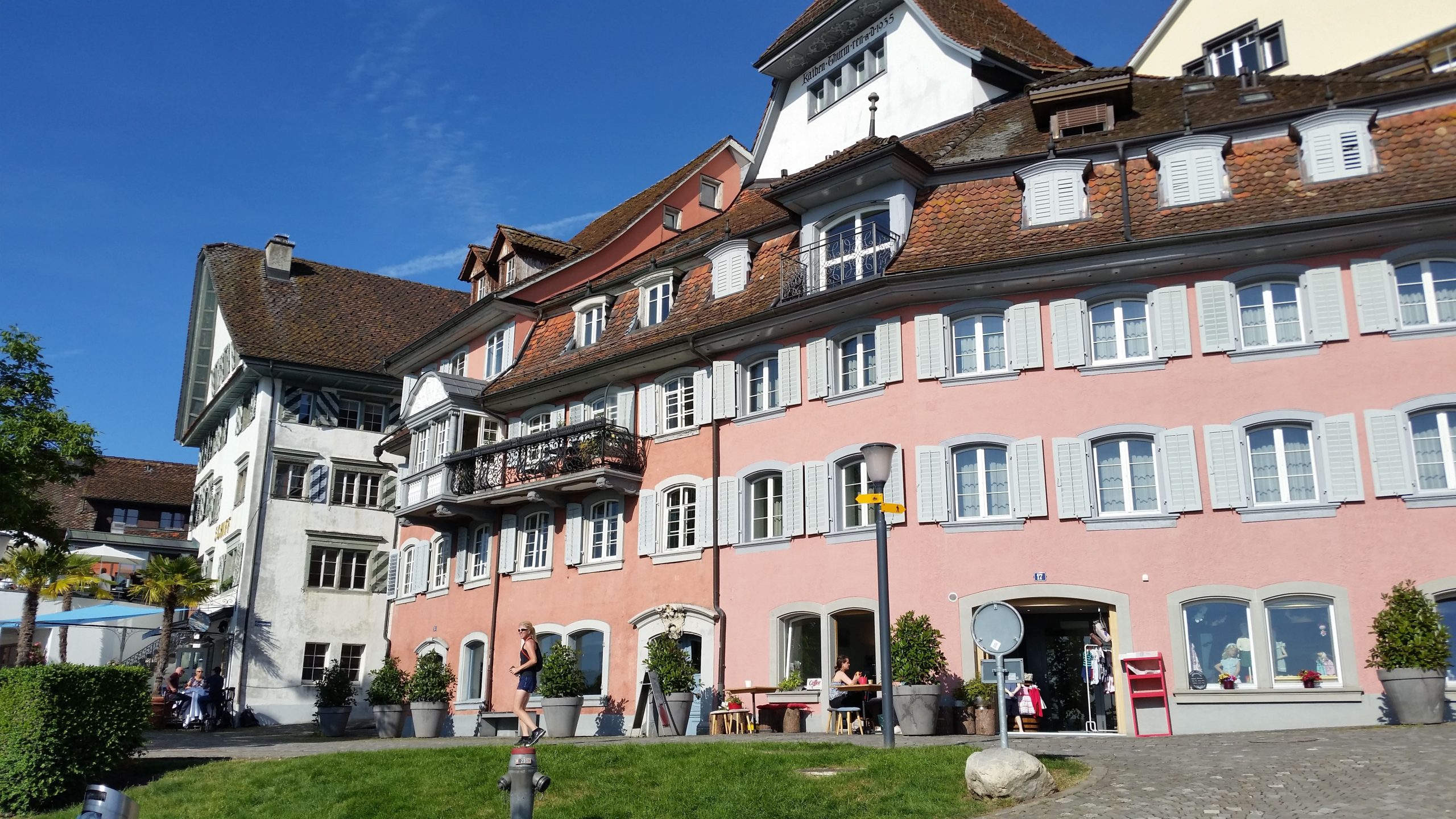 Im Hotel Roemerhof konnten wir schon mittags unsere Zimmer beziehen. Das Hotel sah wie eine alte Burg aus. Nach einem Essen in einem Restaurant war uns heute nicht schon wieder. Also deckten wir uns im nächsten Migros mit Essen ein und machten eine Zimmervesper in einem speziellen Qutfit.