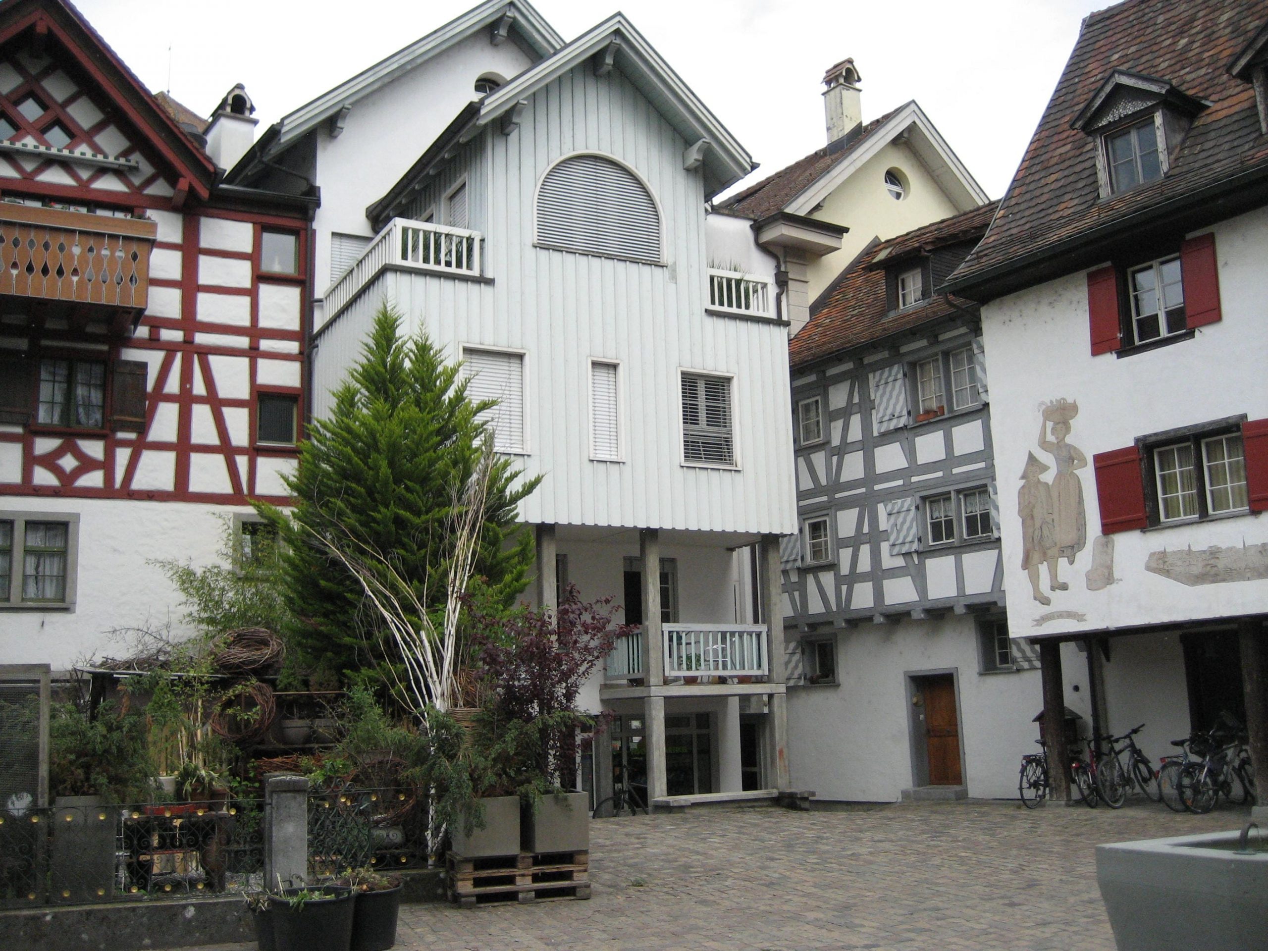 Der anfängliche Sonnenschein, der uns in Einsiedeln noch hoffen ließ, war schon längst einem grauen Himmel gewichen. Alls war grau, der Himmel, der See und die Berge. als wir dann in die Wolken abtauchten, war es auch noch naß. In Einsiedeln angekommen, hatten wir Glück, daß wir unser Hotelzimmer gleich beziehen konnten. Wir machten zwei Spaziergänge durch das nette Städtchen und träumten davon, wie schön es bei Sonnenschein hier sein müßte.