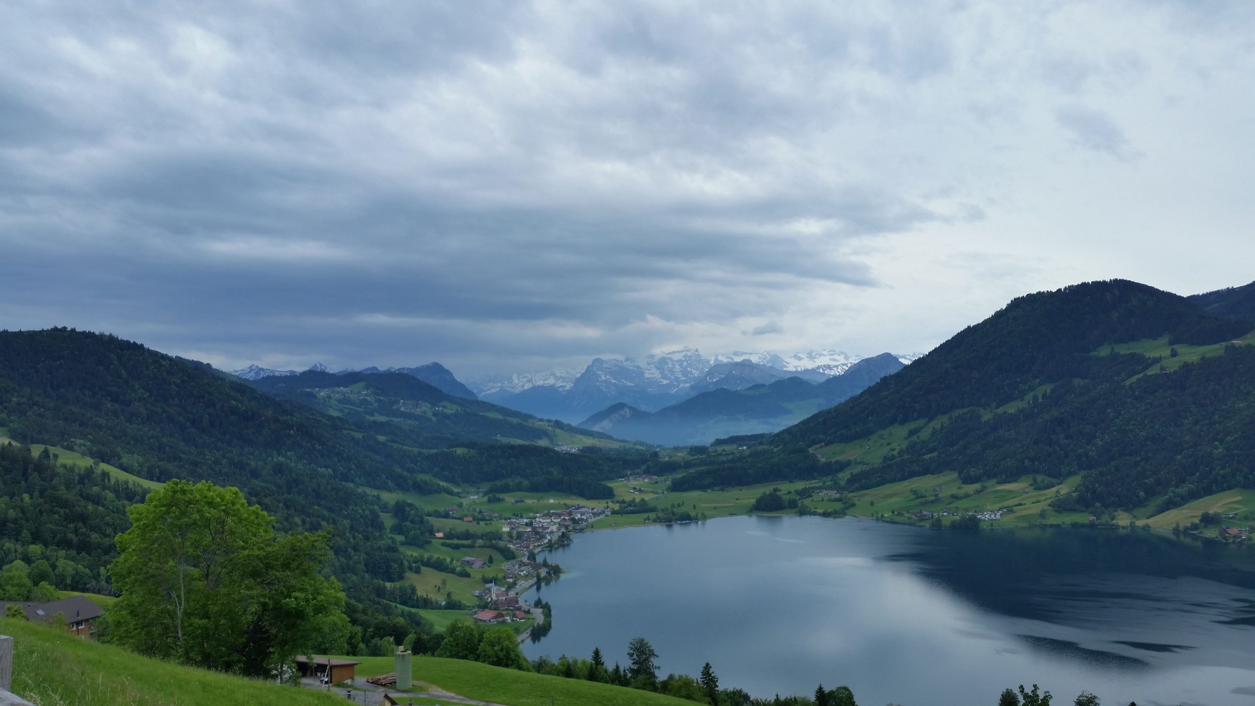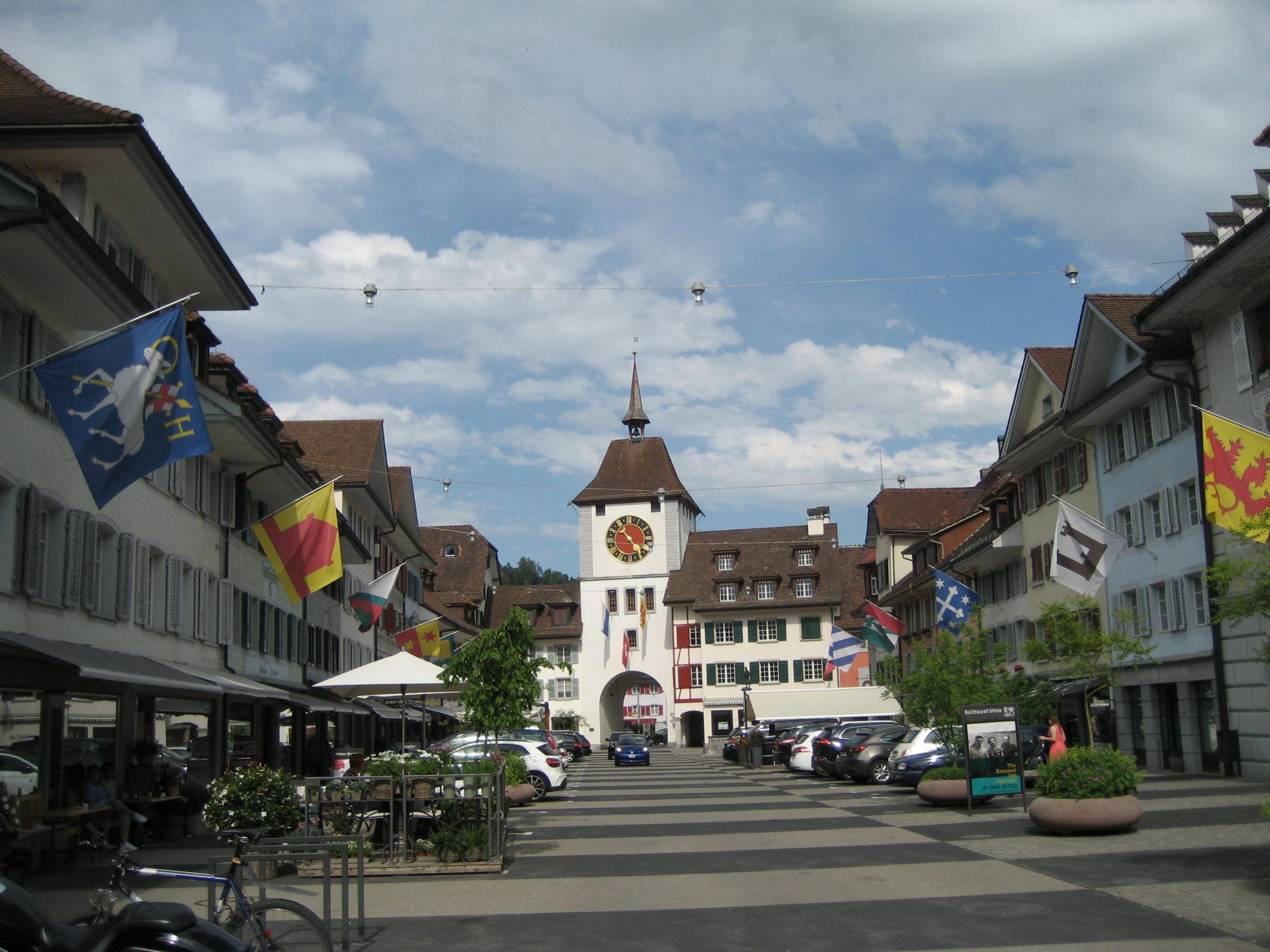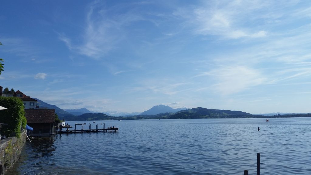 Am Abend hatte es geregnet, aber morgens verzogen sich die Wolken. Diese Etappe war die erste, an der wir mehr herunter als herauf radelten. Nach Willisau ging es moderat berauf und bergab bis es schließlich am Sempacher See heftig bergab ging. Für alle Fälle hatten wir in Sempach unsere Akkus wieder aufgeladen, so daß wir mit voller Power für nächsten 37 KM in Angriff nehmen konnten.