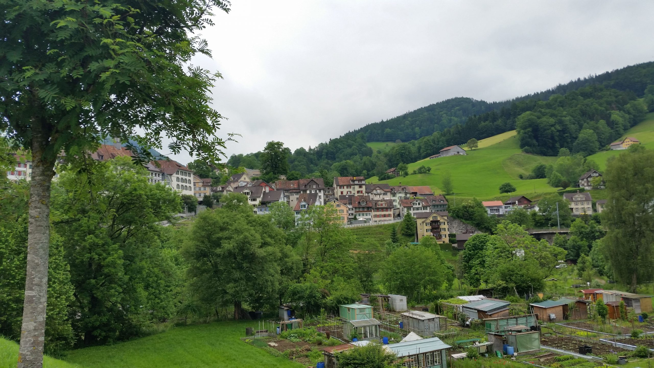 Wir hatten Glück, unser Ziel Lichtensteig (Wattwil) ohne Regen zu erreichen. Es war nut ziemlich kalt, was das Vergnügen doch erheblich schmälerte. Für diese Nacht hatten wir ein B&B Zimmer gebucht, da die Bettenauswahl in dieser Gegend mehr als dürftig war. Da die Vermieterin erst abends da war, hatte sie uns rechtzeitig ein Mail geschrieben, wie wir schon ohne sie die Zimmer beziehen konnten. Das nahmen wir aufgrund der Temperaturen auch dankend an. Wir füllten dann im Ort unsere Vespervorräte auf und konnten gemütlich in unserem warmen Zimmer essen.