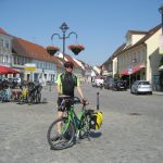 In Lübben machten wir eine Pause am Marktplatz. Brachen aber recht bald wieder auf, da ein Windchen aufzog und ich Angst hatte, dass das angekündigte Wetter Norberts Haut durchnässten könnte. Von da an ging es auf dem Dahmeradweg nach Norden. Wir fuhren an vielen großen Seen vorbei und wären auch gern baden gegangen. Leider waren diese Seen bei näherem Betrachten nicht mehr einladend zum Baden. Es waren eben nur recht flache Fischteiche mit reichlich Entengrütze und ähnlichem Zeugs.
