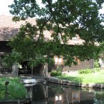 In Lübbenau angekommen, fuhren wir auf dem Weg zur Spree zunächst an riesigen Parkplätzen vorbei. Das ließ schon einmal erahnen, was am Wochenende oder in den Ferien hier los ist. Wir machten uns sogleich auf Richtung Lehde auf. Dieser Ort ist bis heute nur per Boot zu erreichen, alternativ nun auch zu Fuß oder mit dem Rad. Der Radweg geht bis unmittelbar ans Wasser. Eine steile Holzbrücke mit Treppen und einer schmalen Schieberampe führt dann zu den Häusern. Diese Nummer haben wir uns geschenkt. Wir haben unsere Räder vor der Brücke abgeschlossen und sind zu Fuß bis zu den Häusern gelaufen.