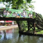 Der Ort besteht überwiegend aus Garten/Terassenwirtschaften, die von den unzähligen Spreekänen angesteuert werden und haufenweise Touris abladen. Auf dem Rückweg sahen wir die vielen Kähne von einer Brücke aus schon kommen. Sie fuhren wie auf einer Schnur aufgereiht durch die Spreearme.