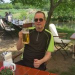 In Schlepzig standen wir auch bald vor unserem Hotel,konnten zwar noch nicht das Zimmer beziehen, aber wenigstens Gepäck und Räder verstauen. In dem Brauereigasthof mit schönem Außenbereich – alles gehört zum Hotel – konnten wir die Zeit bis das Zimmer bezugsfertig war, gut verbringen.