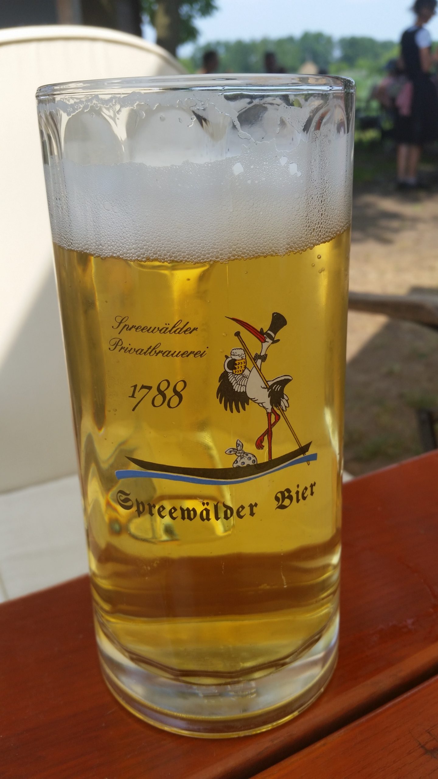Die Landschaft wurde wieder weitläufiger, es gab weniger Querarme der Spree und damit weniger kleine Brücken. Schließlich erreichen wir die Stadt Burg. In der “Radscheune” machten wir endlich eine Pause und aßen etwas aus dem offensichtlich ortstypischen Angebot – saure Eier und Wurstgulasch. Es schien uns noch das harmloseste Essen zu sein. Wir betrachteten es als Versuch, die regionale Küche zu testen, sind aber vorsichtiger geworden.