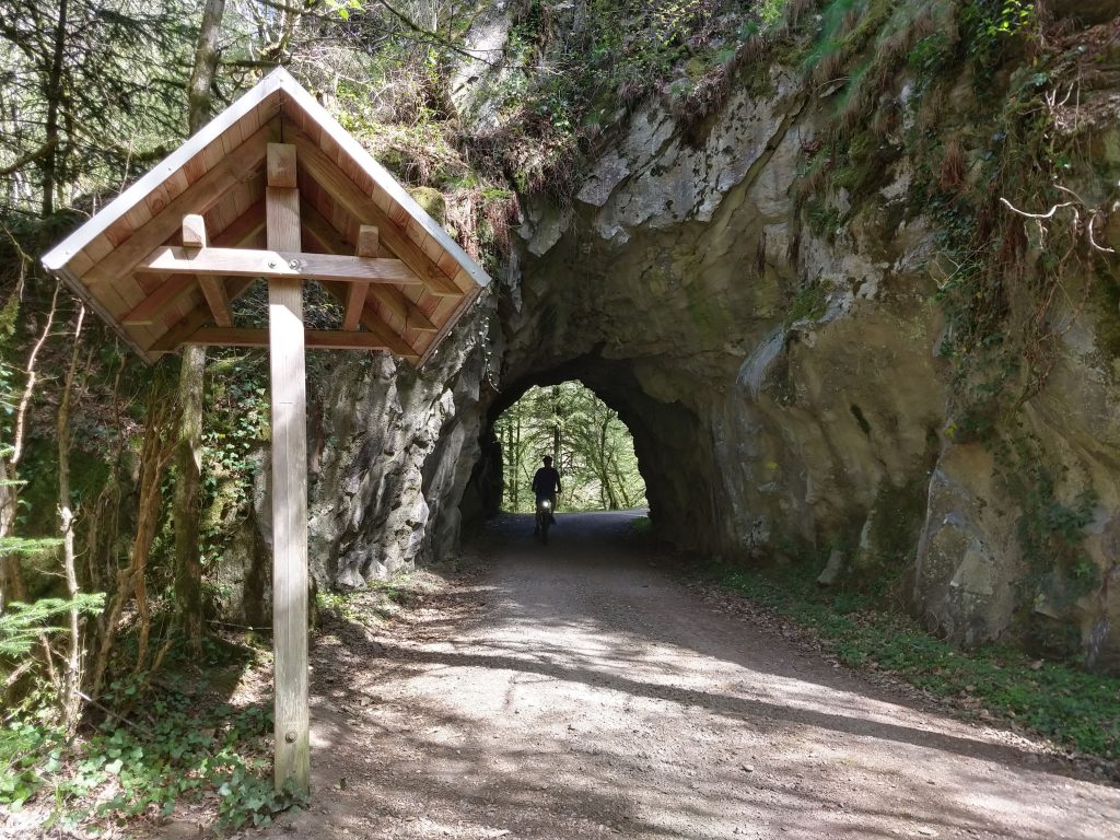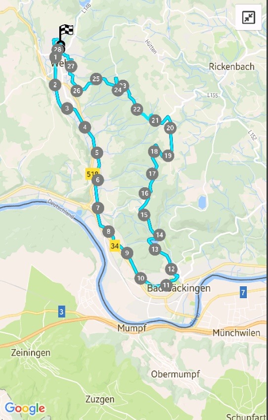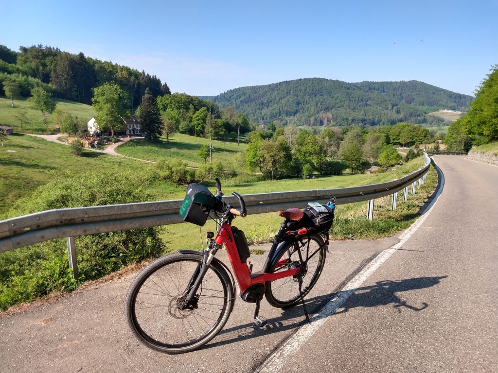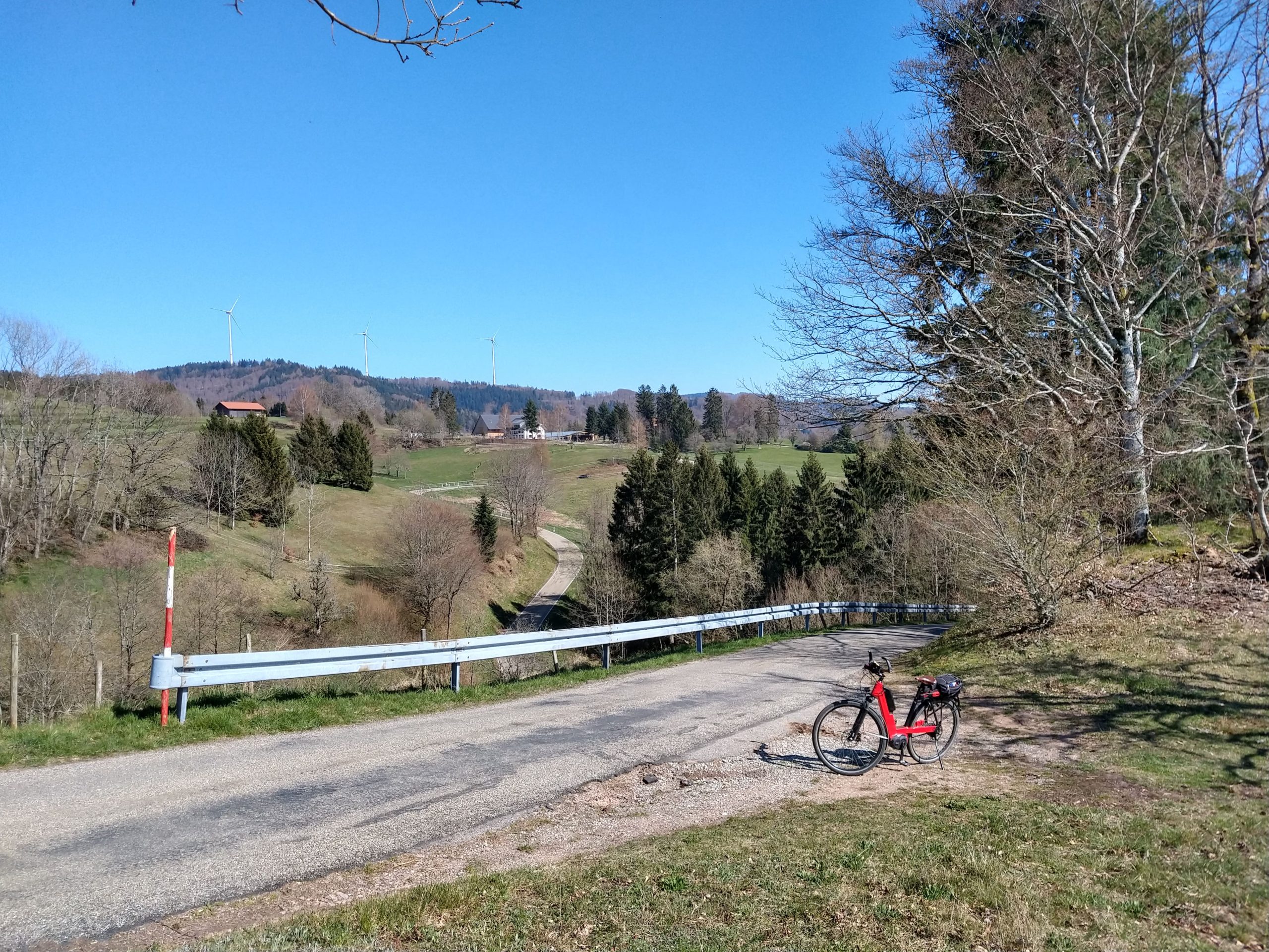 Irgendwann sah ich oberhalb von mir den Sendeturm, glaubte auch fest daran, dass mein Weg unterhalb weiter verlief. Das war leider ein großer Irrtum. Der Anstieg schien kein Ende nehmen zu wollen.Westlich von Bergalingen ging es dann auf die Strasse Richtung Wehr. Trotz des Feiertags war der Verkehr, vor allem der Motorradverkehr, sehr überschaubar und die Autofahrer haben mich auch sehr rücksichtsvoll überholt.